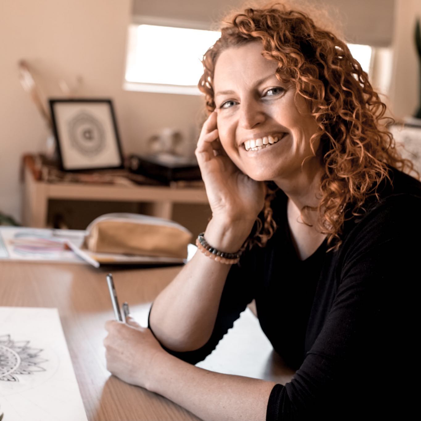 In between mothering my three ninja warrior kids and practicing yoga, you’ll find me in my home studio on the farm with my compass and pen, working on my latest drawing collection.