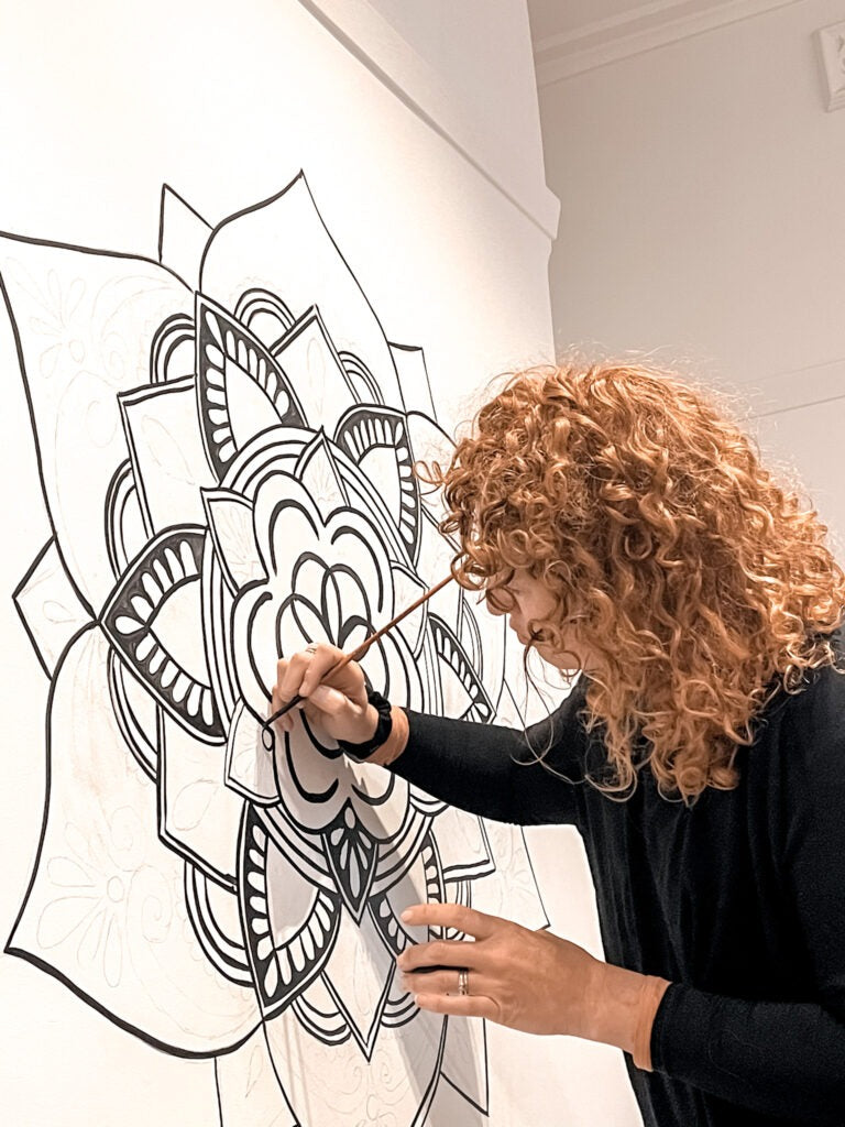 Kylie has captured the essence of my passion and with love imprinted an impression of what I do in my studio. My students sit in front of the mandala and meditate, it draws their focus inward to start the class. – Radha Thiel